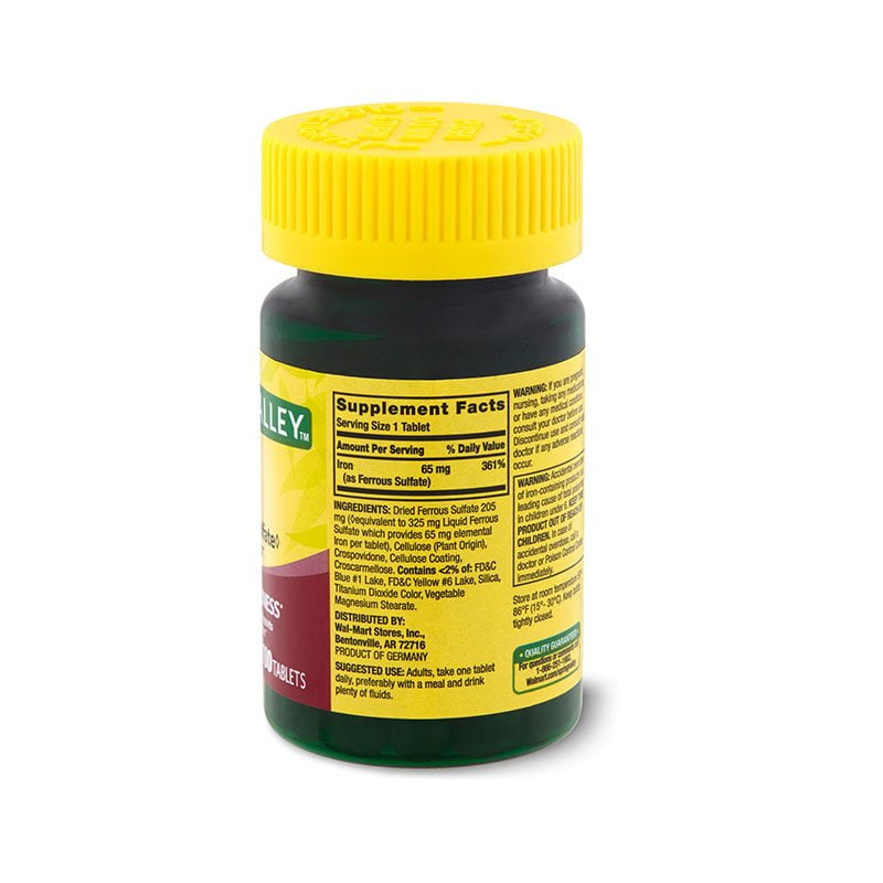 Look no further than Spring Valley Iron General Wellness Supplement Tablets! These iron tablets are formulated to promote general wellness and are suitable for vegan and vegetarian diets. Each tablet delivers 65 milligrams of elemental iron (equivalent to 325 milligrams of ferrous sulfate), an essential mineral that may support normal red blood cell formation. Plus, these tablets contain no gluten, lactose, or artificial flavors. With 100 tablets for over 3 months (100 days) supply, you can trust Spring Valley Iron General Wellness Dietary Supplement Tablets to take care of your iron needs!