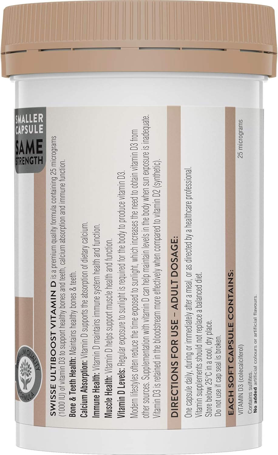 Each capsule contains 25 micrograms of naturally derived Vitamin D3 (cholecalciferol).